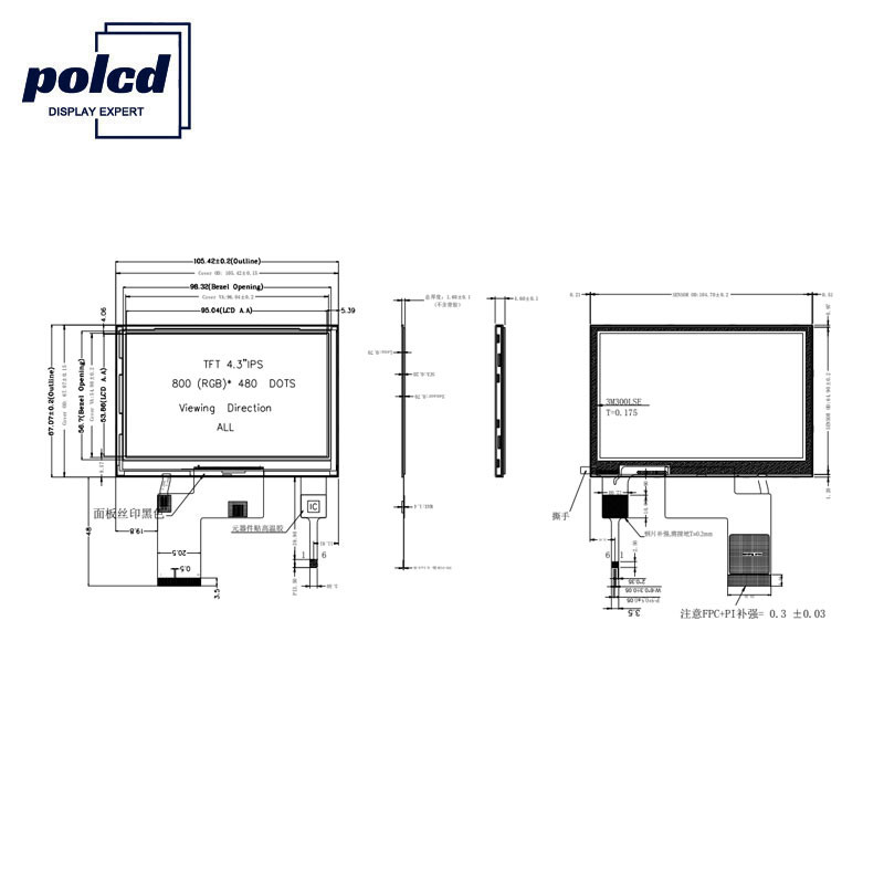 Questo pannello LCD a sfioramento è un display a cristalli liquidi (LCD) con transistor a film sottile (TFT) a matrice attiva di colore che utilizza un TFT in silicio amorfo come dispositivo di commutazione.Se il tuo prodotto richiede una dimensione di 4,3 pollici, il nostro lcd è proprio ciò di cui hai bisogno.Migliora il design del tuo prodotto aggiungendo il nostro prodotto con risoluzione 800 * 480.Il dipartimento di controllo qualità ha misurato che la luminanza è di 280 nit in condizioni di normale funzionamento.